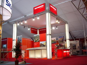Výstavní expozice realizujeme přízemní i patrové. Mohou být zcela z atypických materiálů nebo smíšené s konstrukčními výstavními skladebnými systémy. Realizujeme také výstavní stánky ze skladebných systémů (Octanorm, Alur, Syma orbit, patrová konstrukce), s použitím originálního atypického designu.